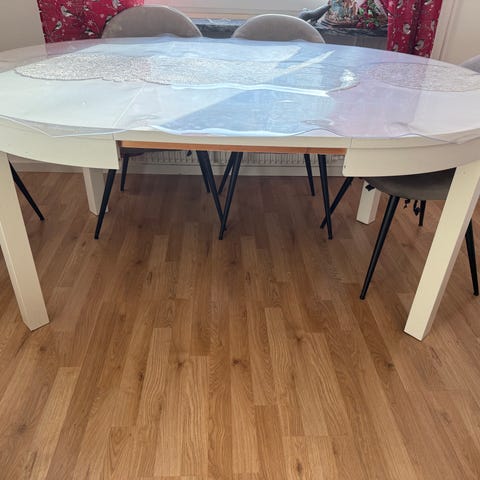Runt matbord med iläggsskiva