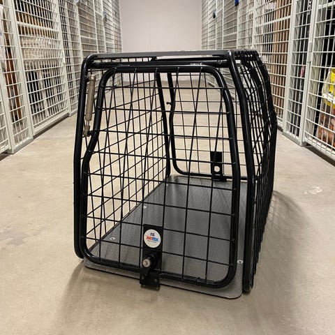 Hundbur i metall med svart lackerad stomme. Bur med galler runtom och öppning fram med låsbar dörr. Anpassad för transport av hund i bil eller för användning inomhus. Robust konstruktion med plan botten som kan kompletteras med filt eller dyna för ökad komfort. Passar mindre till medelstora hundar beroende på mått.