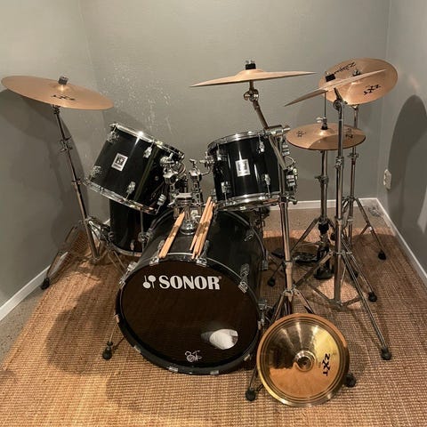 Säljer ett mycket fint Pearl Forum Series trumset metallicgrå/svart finish. Setet är nästintill aldrig använt och har mest stått uppställt, så skicket är mycket bra.