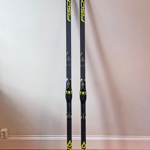 Fischer Superlight Wax längdskidor med bindningar. 183 cm. Skidorna är valla-skidor (wax) med märkning "superlight wax" och har en konstruktion anpassad för klassisk åkning.
