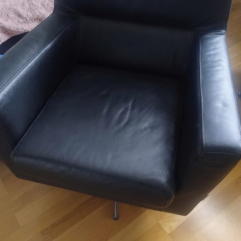 Finns lite målarfärg på fåtöljen, kan försöka gnugga bort den