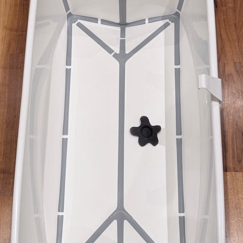Vit Stokke Flexi Bath babybadkar / badbalja med propp i botten för enkel tömning.