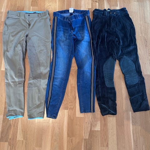 Två par ridbyxor. Ca st 130 cl men upplever som små i storleken. 50 kr styck. Använda men har mer att ge. Hämtas nära Mörby C