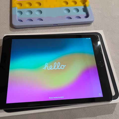 iPaden har alltid använts med bokfodral och saknar synliga repor eller märken. Fungerar utan problem.