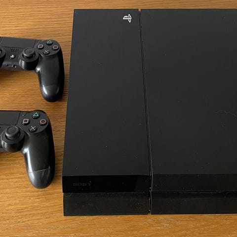 Playstation ink 2 st kontroller och tre spel (se bild).