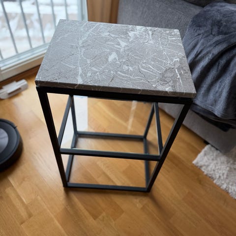 Ett sidobord eller sängbord från MIO, med glas/marmor skivor.