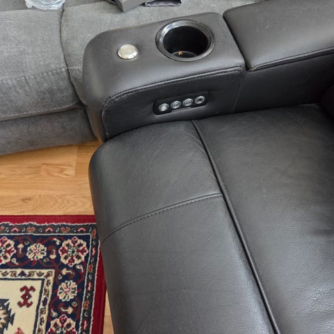 En bio soffa som man kan fälla ut benen på och fälla bak ryggen elektroniskt