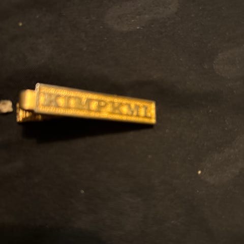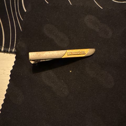 Sigma slipsklämma i metall. Klämman har en avlång, lätt böjd form med Sigma-logotyp på framsidan. Baksidan har en fjäderbelastad klämma som fästs på slipsen och håller den på plats mot skjortan. Passar som enkel accessoar till kostym och skjorta.