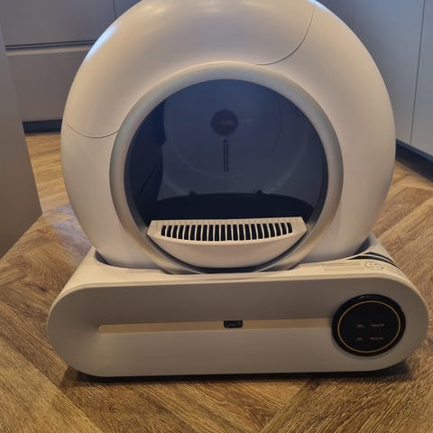 Smart kattlåda som rengör sig själv automatiskt efter att katten har använt den. Smutsen samlas i en separat behållare, vilket gör att du slipper skopa varje dag. Det enda du behöver göra är att byta påsen ungefär var 2–3 dag.