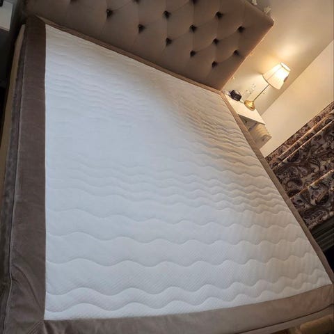 IKEA madrasser i vitt tyg. Två separata madrasser som kan användas tillsammans i en dubbelsäng eller var för sig i enkelsängar. Madrasserna har quiltat överdrag med geometriskt mönster. Passar sängram med ribbotten enligt bilderna. Lämpliga för sovrum eller gästrum beroende på önskat användningsområde.