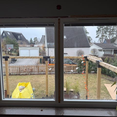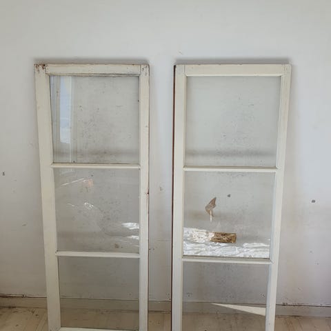 Finns två fönster, lika stora. Det ena är öppningsbart (vrid) och det andra är fast.