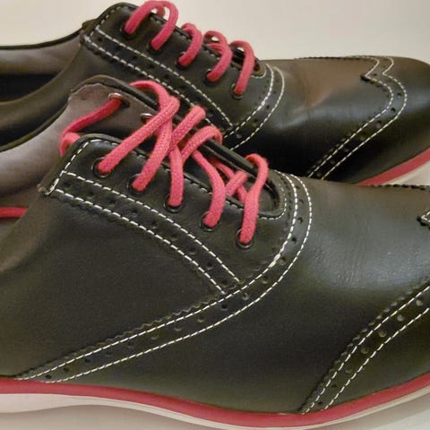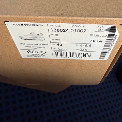 Ecco golfskor i storlek 40. Skorna är svarta med vita detaljer och har snörning framtill. Ovandelen är i syntet/läderliknande material med ventilerande textilpartier vid sidor och häl. Yttersulan är försedd med fasta dobbar för grepp på golfbanan. Passar för golfspel och annan utomhusaktivitet där stadigt grepp önskas.