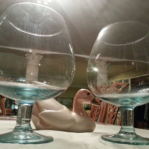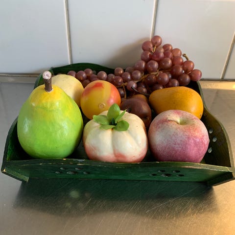 Denna färgglada konstglasskål på fot delar många visuella egenskaper med svenskt konstglas från sent 1900-tal.