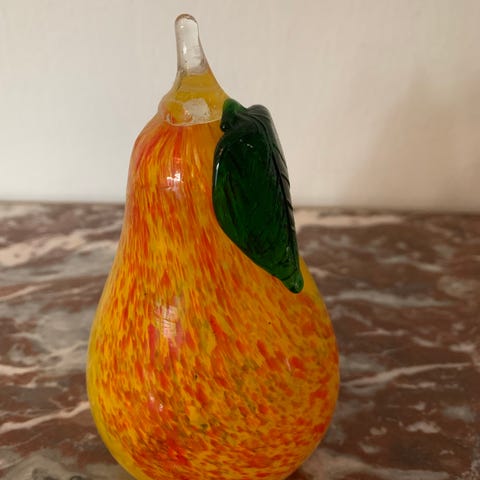 Grönt päron ljus att pynta och dekorera med. Välarbetade konstgjorda med verklighettrogen känsla.