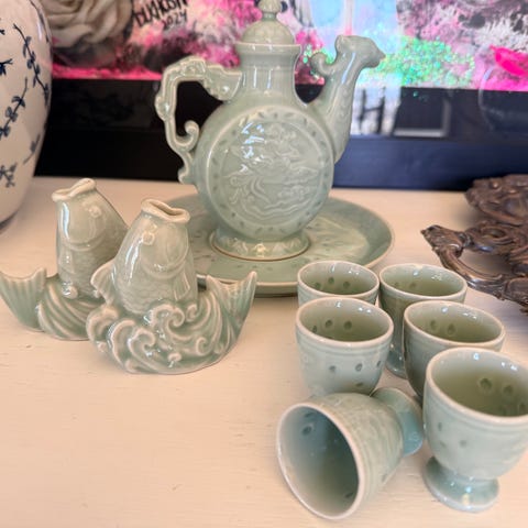 Tekanna keramik beige med rottinghandtag