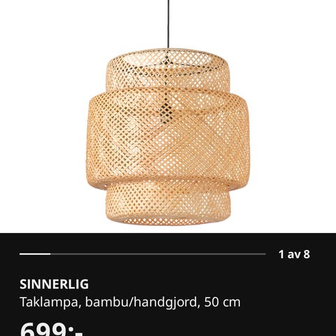Vi säljer vår Sinnerlig taklampa 50 cm (NYPRIS 699kr) för 300kr. Den är i mycket gott skick.