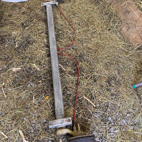 Dragkrokar i metall av okänt märke. Kraftiga, rostiga metalldelar som kan användas som reservdelar eller för olika konstruktions- och verkstadsprojekt. Lämpliga för den som behöver robusta drag- eller fästkomponenter och har möjlighet att anpassa eller renovera delarna efter eget behov.pris 800kr för båda