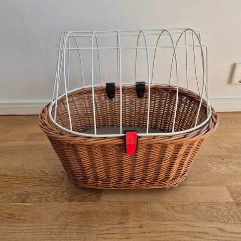 Klickfix "Racktime" Doggy Plus Hundkorg, Max 8 kg. Nypris 2400 kr. Pakethållare med Racktimefäste" fram eller bak går att köpa separat och monteras enkelt på de flesta cyklar.
