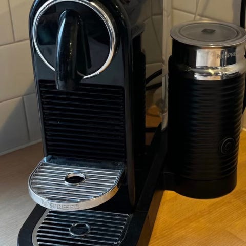 Nespresso kaffemaskin med mjölkbehållare silver