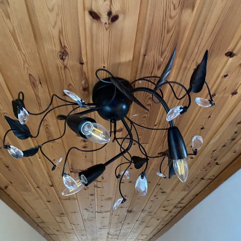 Taklampa svart med 3 armar. Skitsnygg med 3 stora glödlampor(medföljer ej)