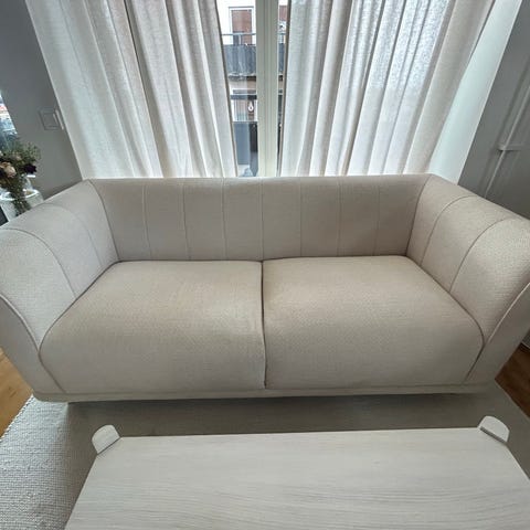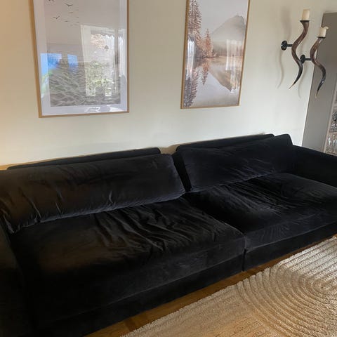 En stilren o bekväm 2sitssoffa i brunt tyg med svarta metallben. Soffan är i fint begagnat skick har använts normalt