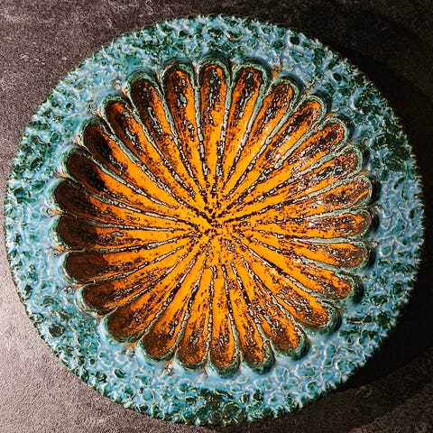 Säljes i väldigt fint skick! Vänligen se bilderna i annonsen på fram och baksida. Effekten av ”krackeleringar” är en normal del av självaste designen. På baksidan finns små diskreta repor men inga defekter på varken tallriken eller dess design på ovansidan.