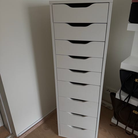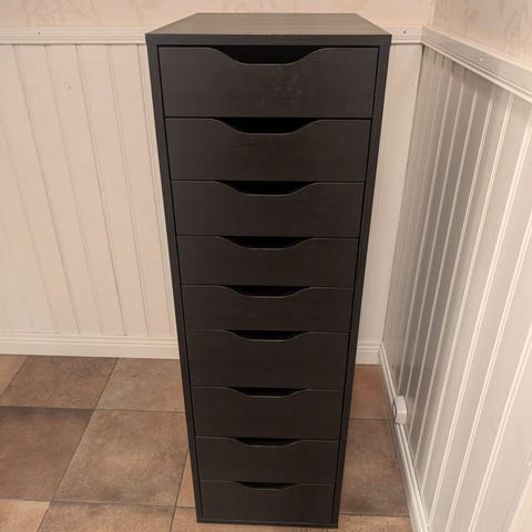 Jag säljer denna byrå från IKEA och vill få bort den så snabbt som möjligt. Den ser bra ut och funkar jättebra. Den har några repor inne i lådorna.