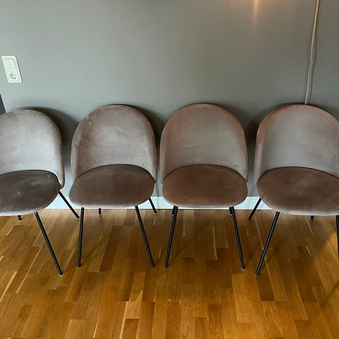 Säljer 6 st snygga och bekväma matstolar i ljus/beige tyg med svarta ben.