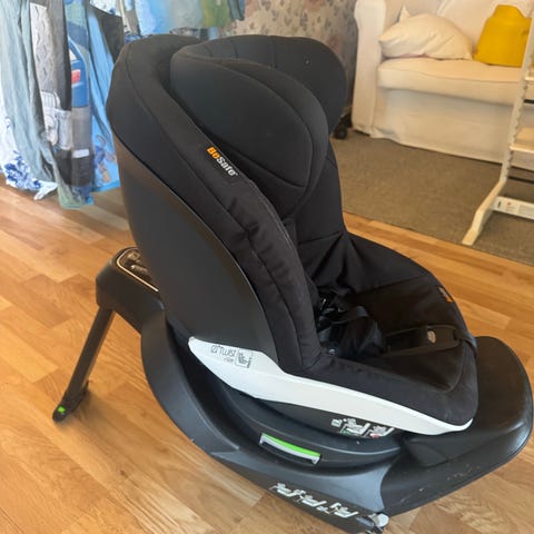 BeSafe bilbarnstol i storlek 25. Bakåtvänd bilbarnstol med ISOFIX-fästen och stödben enligt bilderna. Stolen har fempunktsbälte och justerbart huvudstöd. Klädseln är i svart tyg. Passar barn inom storleksintervall för grupp 25 enligt tillverkarens rekommendationer. Alla funktioner och inställningar framgår av instruktionerna på stolens bas och sidor.