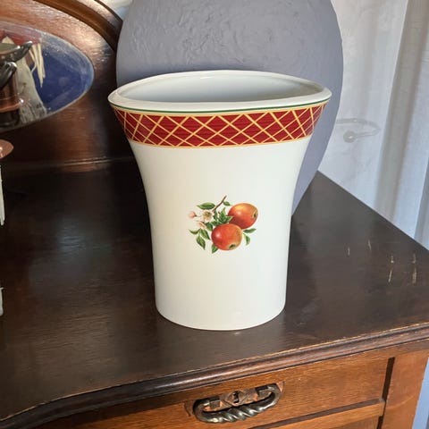 Dekorativ handmålad kruka i keramik. Mått 18 cm i diameter, 28 cm i höjd