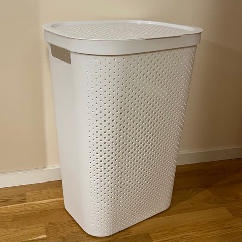 Tvättkorg vit plast rottingmönster