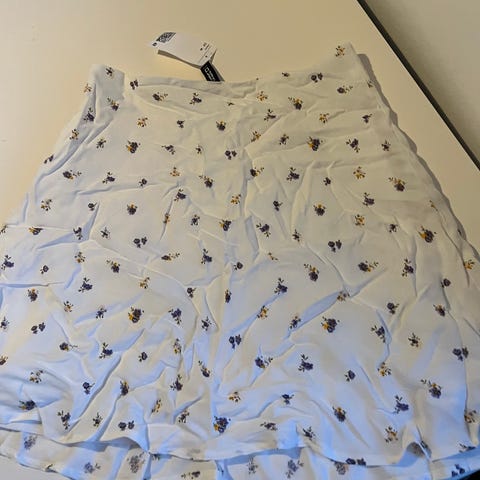 Gullig vit tubtopp / topp / linne från H&M Divided i storlek 40. Stabil reså i toppen som håller allt på plats och följsamt stretchigt tyg med svarta blixt-mönster. Multifunktionell, går även att använda som kjol. Mycket fint skick, som ny!