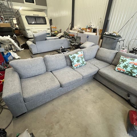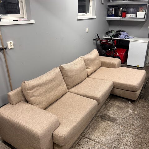 Rymlig och fräsch soffa med schäslong i väldigt bra skick! En bekväm soffa med schäslong i väldigt bra skick, utan något slitage och sparsamt använd samt att soffan är nystädad. Måtten är 2,65 m x 1,6 m. Vi kan även hjälpa till med frakt mot en mindre extra kostnad för en smidig och enkel affär.