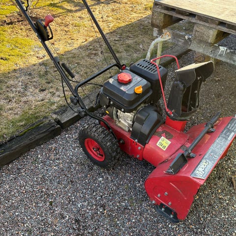 MEEC snöslunga i röd färg. Bensindriven modell , snöintag och justerbar utkastare. Maskinen har grovmönstrade hjul för bättre grepp på snö och is samt handtag med reglage för drift och styrning. Lämplig för röjning av snö på uppfarter, gångar och gårdsplaner. Inköpt de 5 januari och använd i två timmar. Nypris 3900:-. Se spec på Julas hemsida.