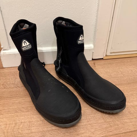 Waterproof G1 handskar i svart färg. Handskarna har dragkedja på ovansidan för enklare på- och avtagning samt förstärkta partier i handflatan för bättre grepp. Modellen är avsedd för användning i vattenmiljöer, exempelvis dykning eller andra vattensporter, med material anpassat för att ge isolering och skydd mot kyla.