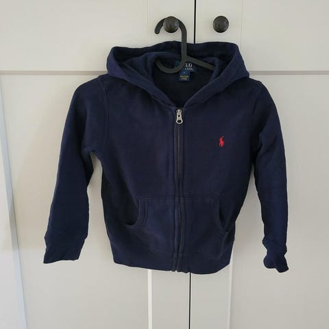 Mörkblå huvtröja med en röd broderad logotyp på bröstet. Tröjan har en känguruficka framtill och ribbade muddar i ärmslut och nederkant. Junior XL 163-174 cm. Tröjan har tvättars ett antal ggr och är därför inte lika mörkblå som vid ny köp. Får inte till bilden riktigt. Kommer från ett djur och rökfritt hem. Köpt på Kidsbrandstore.