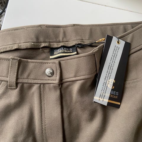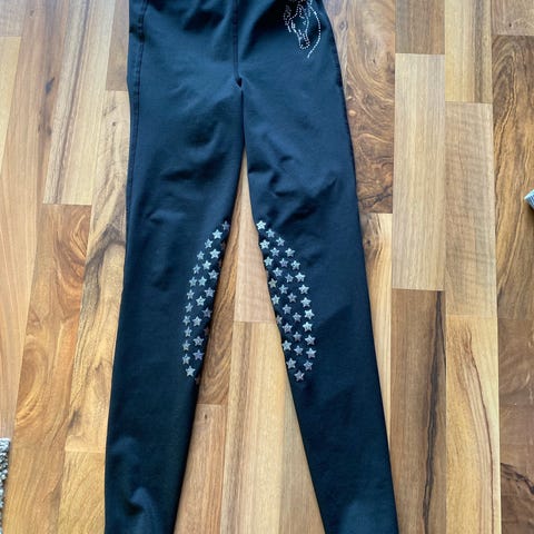 Svarta ridbyxor med helskoning. Byxorna är utformade för ridning och ger bra grepp i sadeln. Passar dam. Materialet verkar vara ett stretchigt tyg som ger rörelsefrihet vid ridning. Rökfritt hem med katt. Märke: CRW. Sparsamt använda.Har Swish.