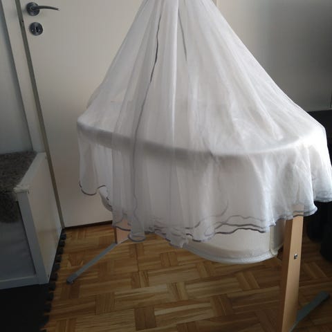 Babysäng på hjul med sänghimmel och madrass säljes.