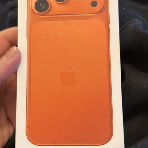 Apple iPhone 17 mobiltelefon med 256 GB lagringsutrymme. Modellen har en orange färg och är utrustad med flera bakre kameror. Lagringskapaciteten på 256 GB ger utrymme för appar, bilder, videor och andra filer. Passar för vardaglig användning som samtal, meddelanden, surf, sociala medier och mediekonsumtion.
