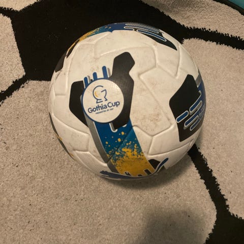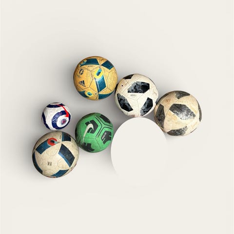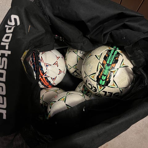 Fyra fotbollar i standardstorlek. En fotboll från Umbro i vit/grå färg samt tre övriga fotbollar i blandade färger, bland annat gul/svart och vit med blå respektive svarta detaljer. Bollarna lämpar sig för spel på gräs eller annan plan yta och kan användas för träning eller spontanspel.