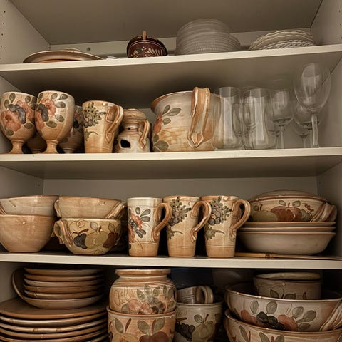 Det är en salig blandning av möbler, köksprylar, lampor, böcker och lite av varje. Mycket är äldre och väl omhändertaget, men fungerar fortfarande utmärkt.