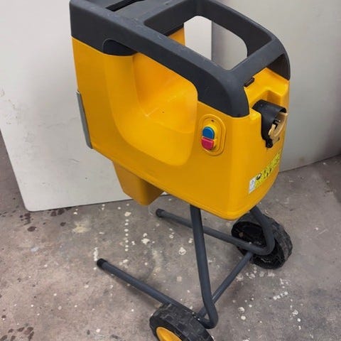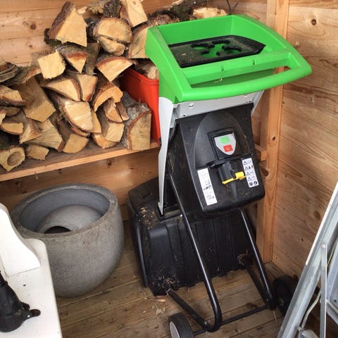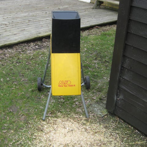En Stiga kompostkvarn. Bra nu för att få sönder grenar m.m till biomassa
