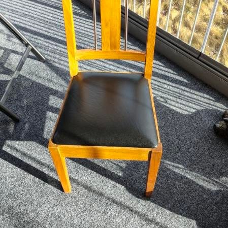 Stolarna är i perfekt skick, bordet står i ett förråd .