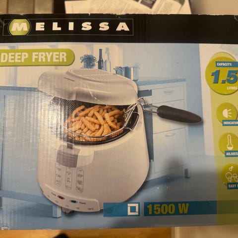 Öanvänd. Fritös från ICA Cook & Eat med kåpa i rostfritt stål. Justerbar termostat med indikatorlampa. Sidohandtag som gör den lätta att bära- Löstagbar oljebehållare