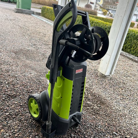 Munstycket kan låsas för kontinuerlig sprayning och har en säkerhetsventil. Behållaren rymmer fem liter och är tillverkad av PE-plast.