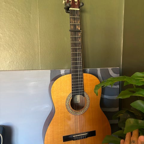 Ramon Garcia Angelina akustisk gitarr i naturträ. Klassisk modell med nylonsträngar och helstorlek. Ljus topp och mörkare sidor och baksida. Passar för akustiskt spel i exempelvis klassisk musik, visor och ackompanjemang. Gitarren har traditionell hals med greppbräda i mörkt trä och mekanik med öppna stämskruvar.