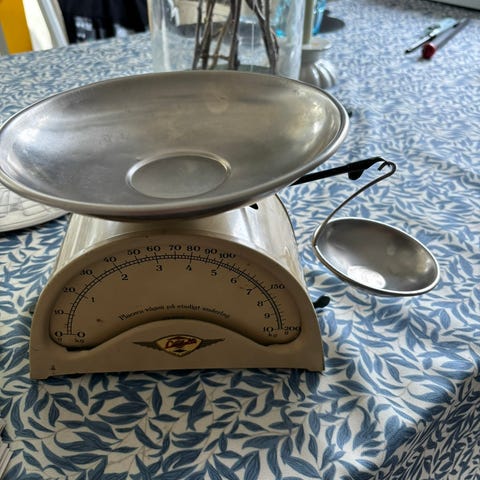 Stathmos golvvåg i grå färg. Mekanisk våg med ståplatta och lodrät stång. Avsedd för vägning stående på golv, exempelvis i hem, mottagning eller liknande miljöer. Klassisk konstruktion med analog avläsning. Material huvudsakligen metall med mörk vågplatta.