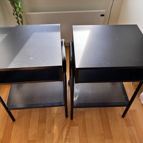 2st svarta vägghängda nattduksbord/sängbord från Mio.