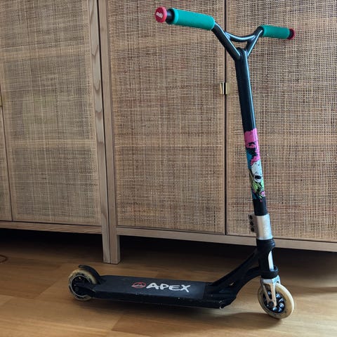 Kickbiken användes för några år sedan och är synligt använd men fungerar perfekt.
