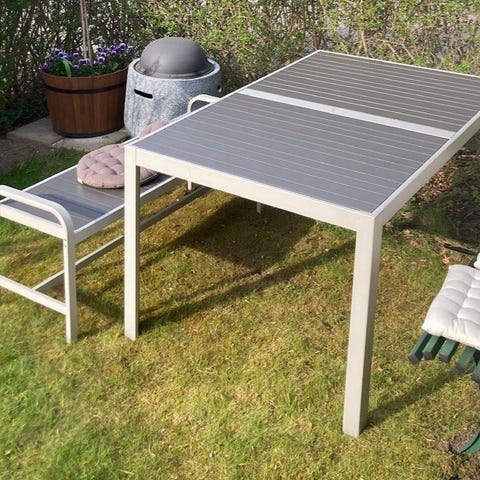 Säljer en uppsättning utemöbler från Grythyttan bestående av ett bord och fyra stolar. Perfekt för uteplatsen eller balkongen. Från den tidlösa klassisker serien